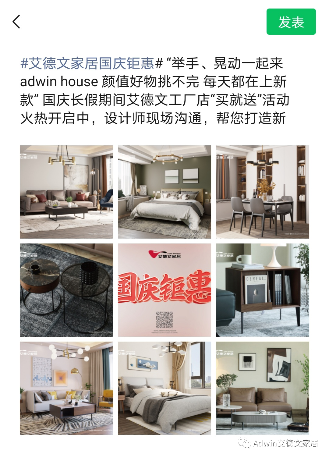 “ #艾德文家居國(guó)慶鉅惠# “舉手、晃動(dòng)一起來 adwin house 顏值好物挑不完 每天都在上新款” 國(guó)慶長(zhǎng)假期間艾德文工廠店“買就送”活動(dòng)火熱開啟中,設(shè)計(jì)師現(xiàn)場(chǎng)溝通,幫您打造新家,預(yù)約電話13484116213 ”