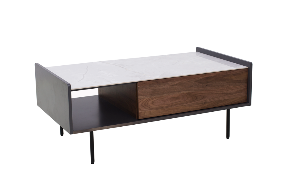 CT-600 灰色亞光側板、底板+混拼胡桃木主體+白色陶瓷+黑亞光金工件