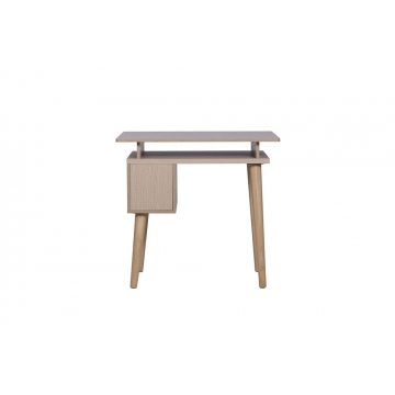 橡木原色三聚氰胺板(PB)+抽盒淺灰布紋三胺板+拉手黃銅色(外購(gòu))+橡膠木做清漆腳